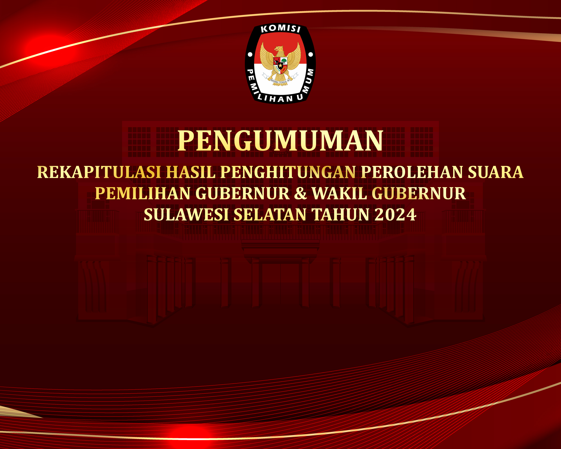 PENGUMUMAN REKAPITULASI HASIL PENGHITUNGAN PEROLEHAN SUARA PEMILIHAN GUBERNUR & WAKIL GUBERNUR SULAWESI SELATAN TAHUN 2024